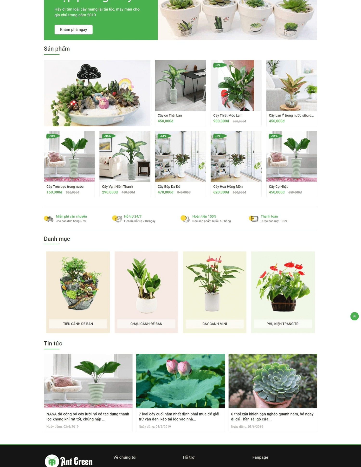Giao diện website Ant Green được thiết kế cho cửa hàng kinh doanh sản phẩm gia dụng, cây cảnh, thời trang,.... Thích hợp cho cửa hàng kinh doanh đa ngành hàng....Cập nhật phiên bản 1.2.0 ngày 16/5/2020