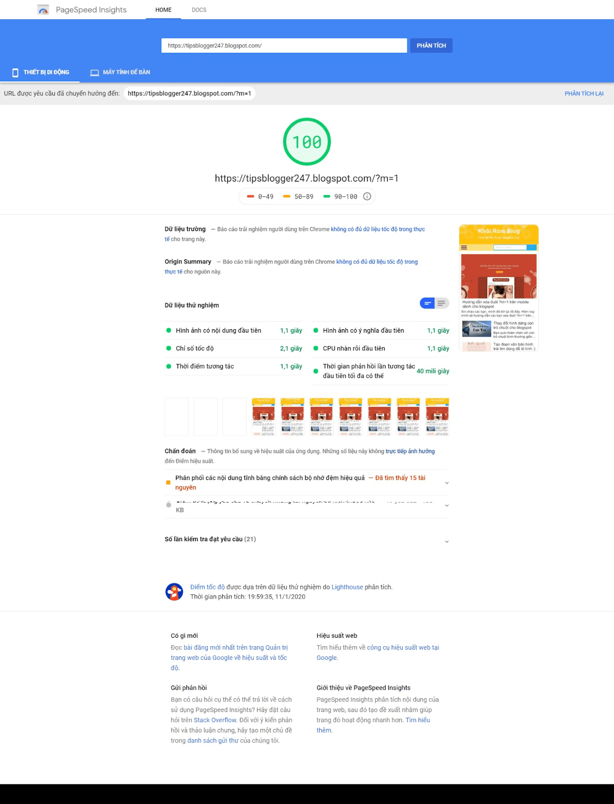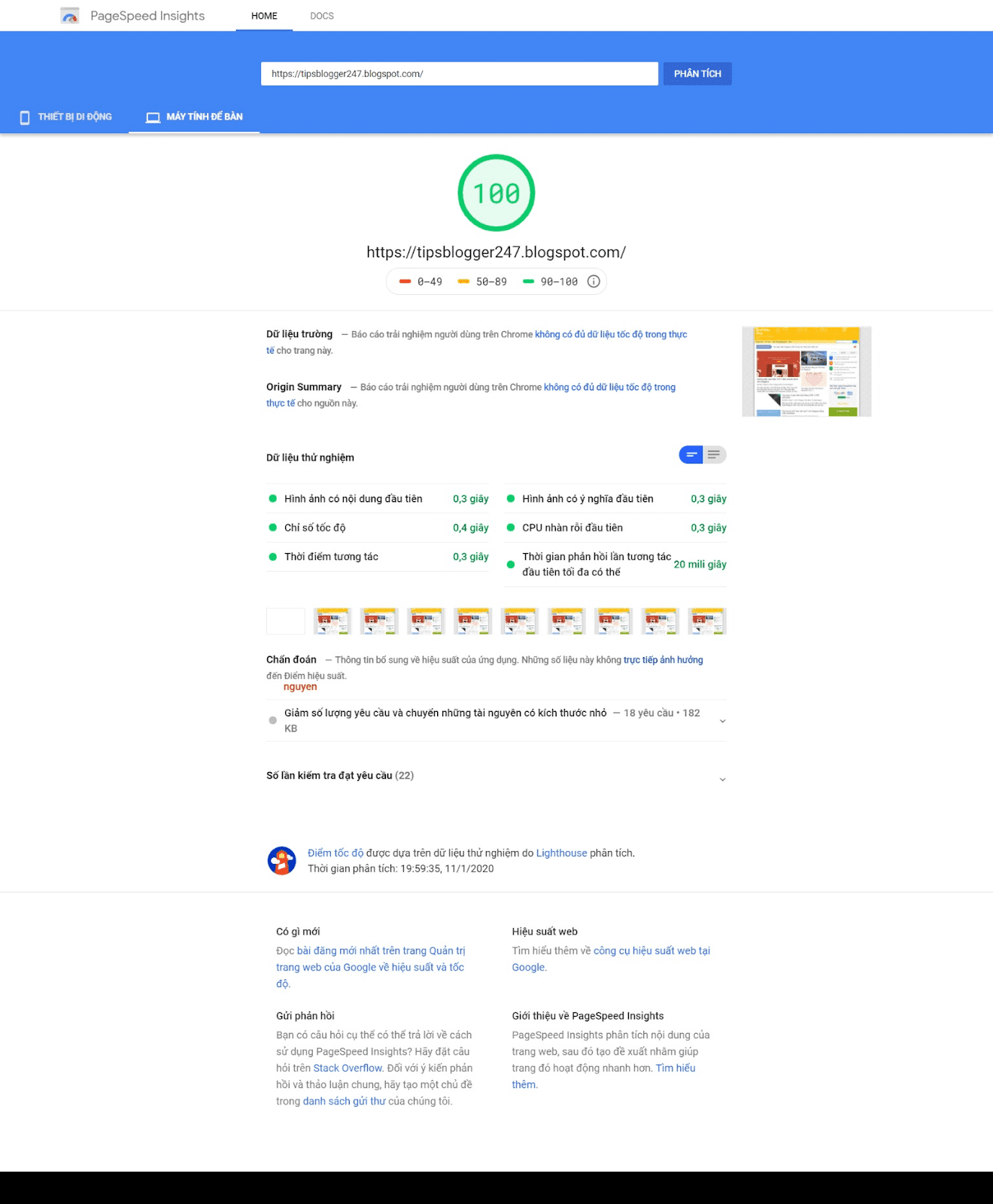 - Điểm Google PageSpeed Insights đạt 100/100