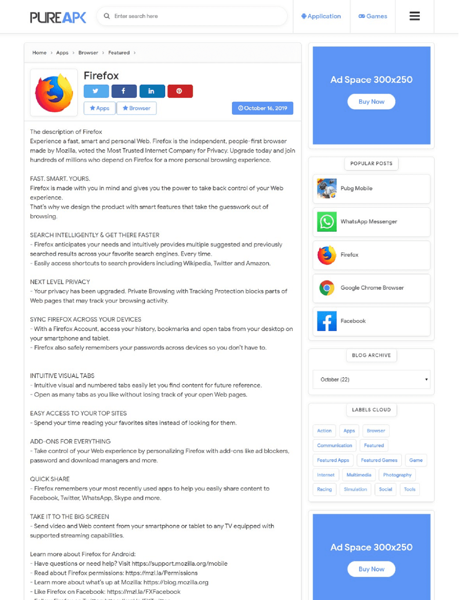 Free Pure APK Premium Blogger Template